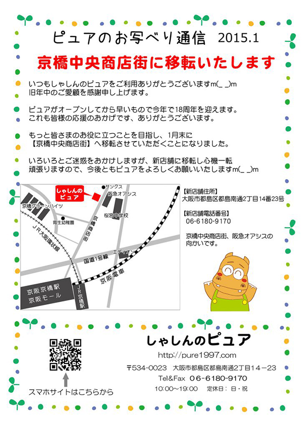 しゃしんのピュアは京橋中央商店街に引っ越します 大阪市都島区の写真店 証明写真なら